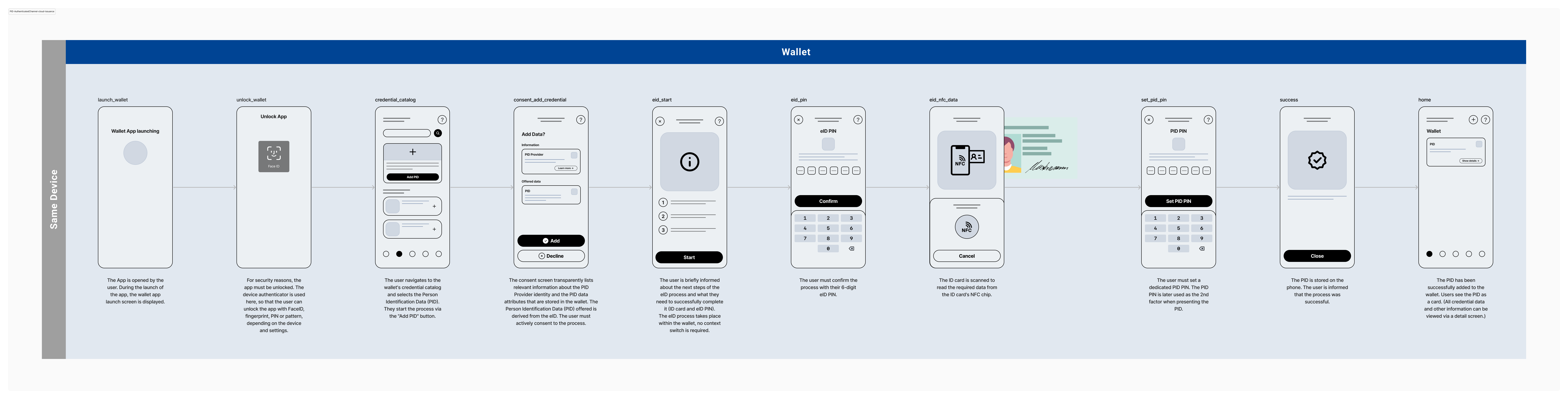 - eID process is integrated in Wallet. No context switch to the AusweisApp is requiredPhysical ID card is required for issuing the PID seed credential